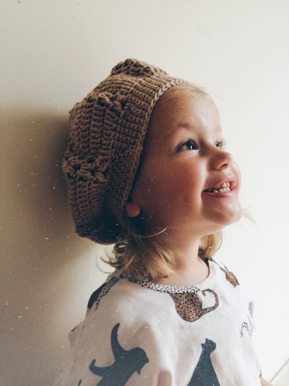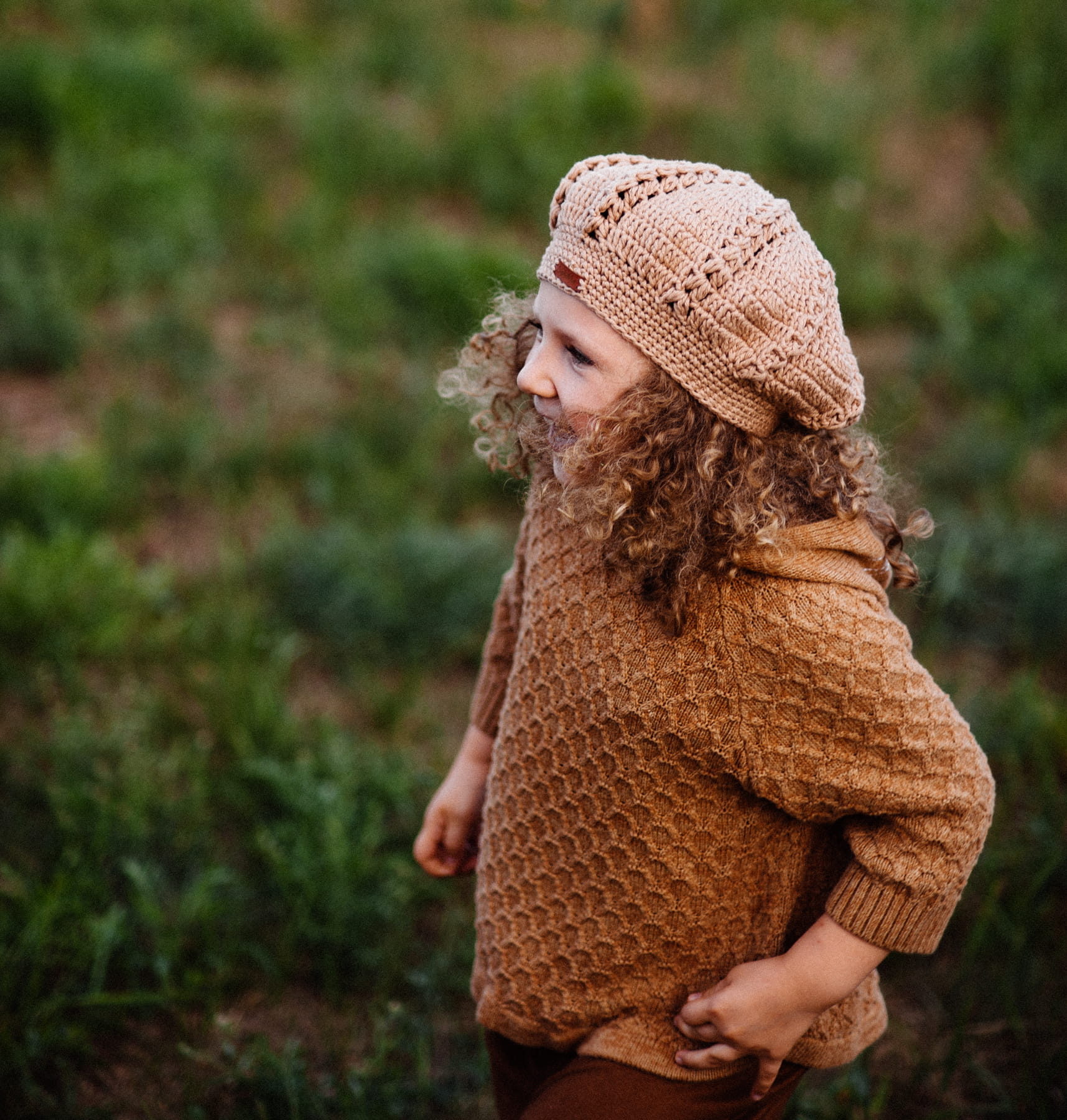 Ręcznie robiony berecik z włóczki 100% bawełny. Jest bardzo wygodny, miły dla skóry i przede wszystkim ochroni małą główkę w chłodne dni. Idealny jako dopełnienie jesiennych i wiosennych stylizacji.