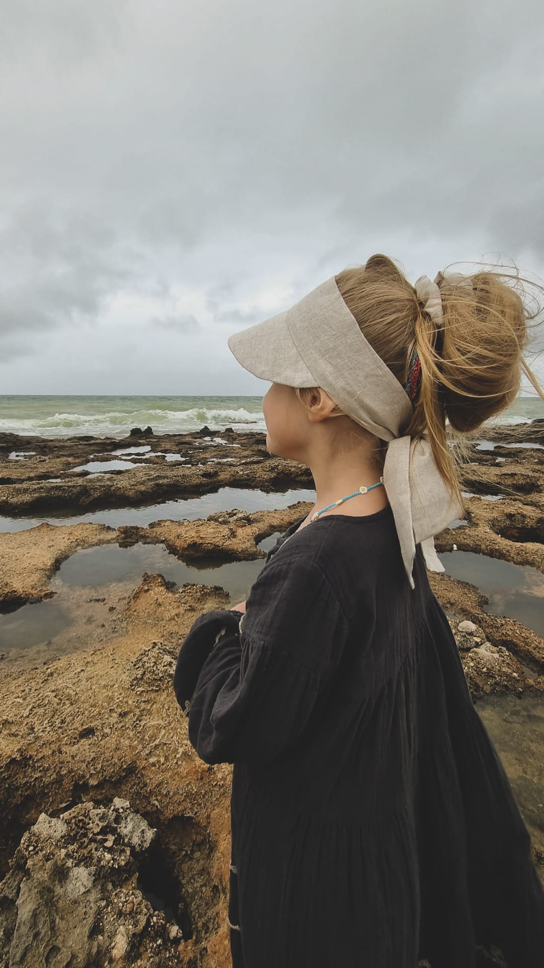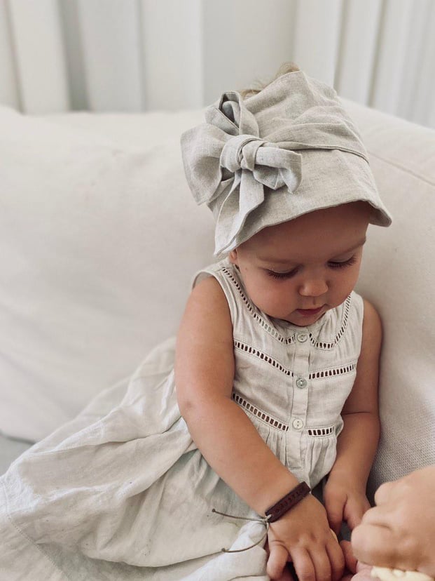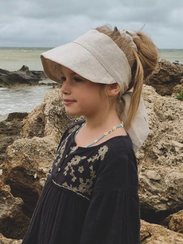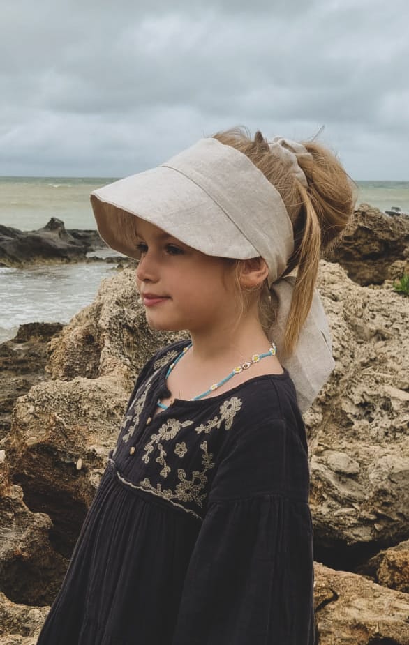 Uniwersalny lniany daszek przeciwsłoneczny.
