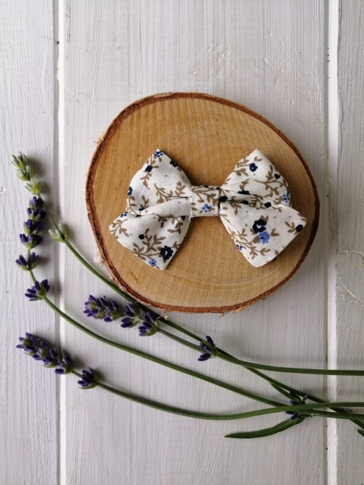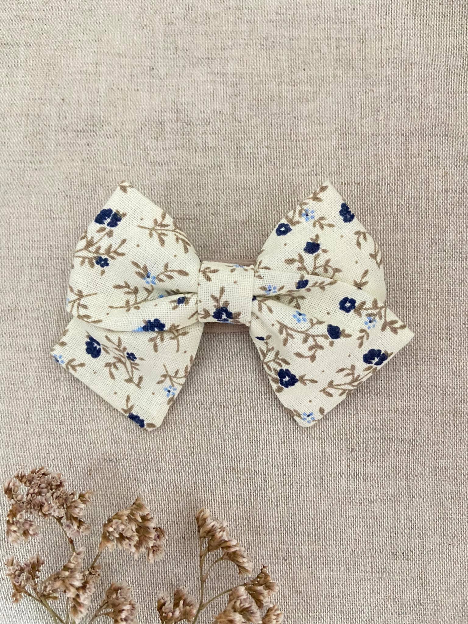 Granatowe kwiatki mini kokardka