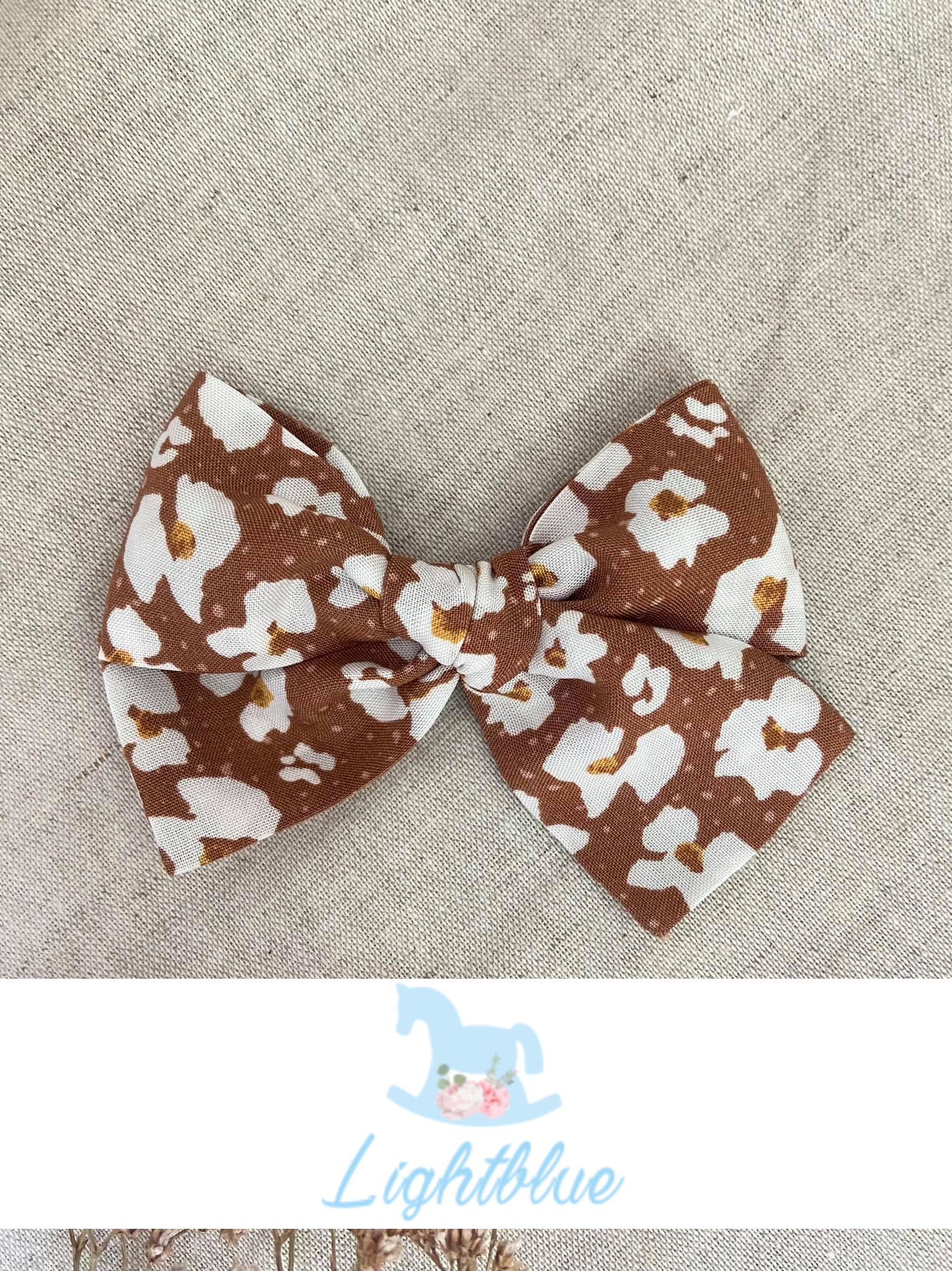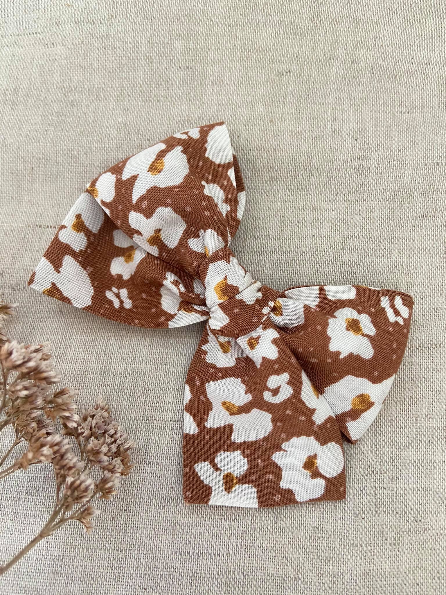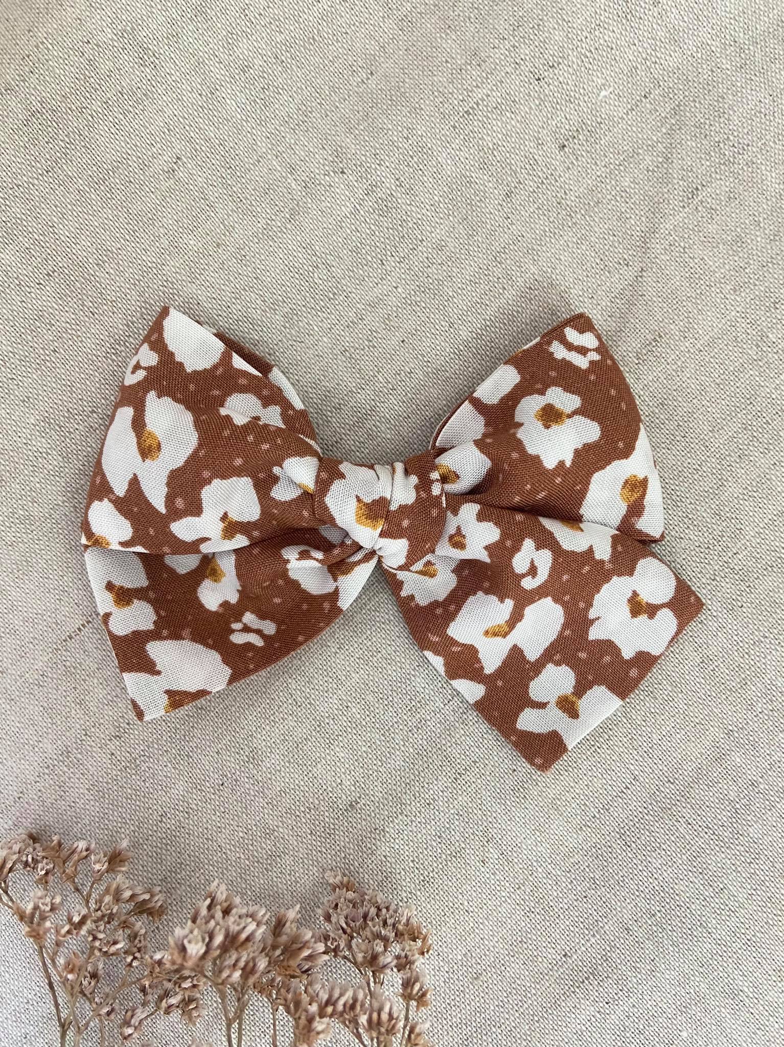 Karmelowa w kwiaty mała wiązana kokardka