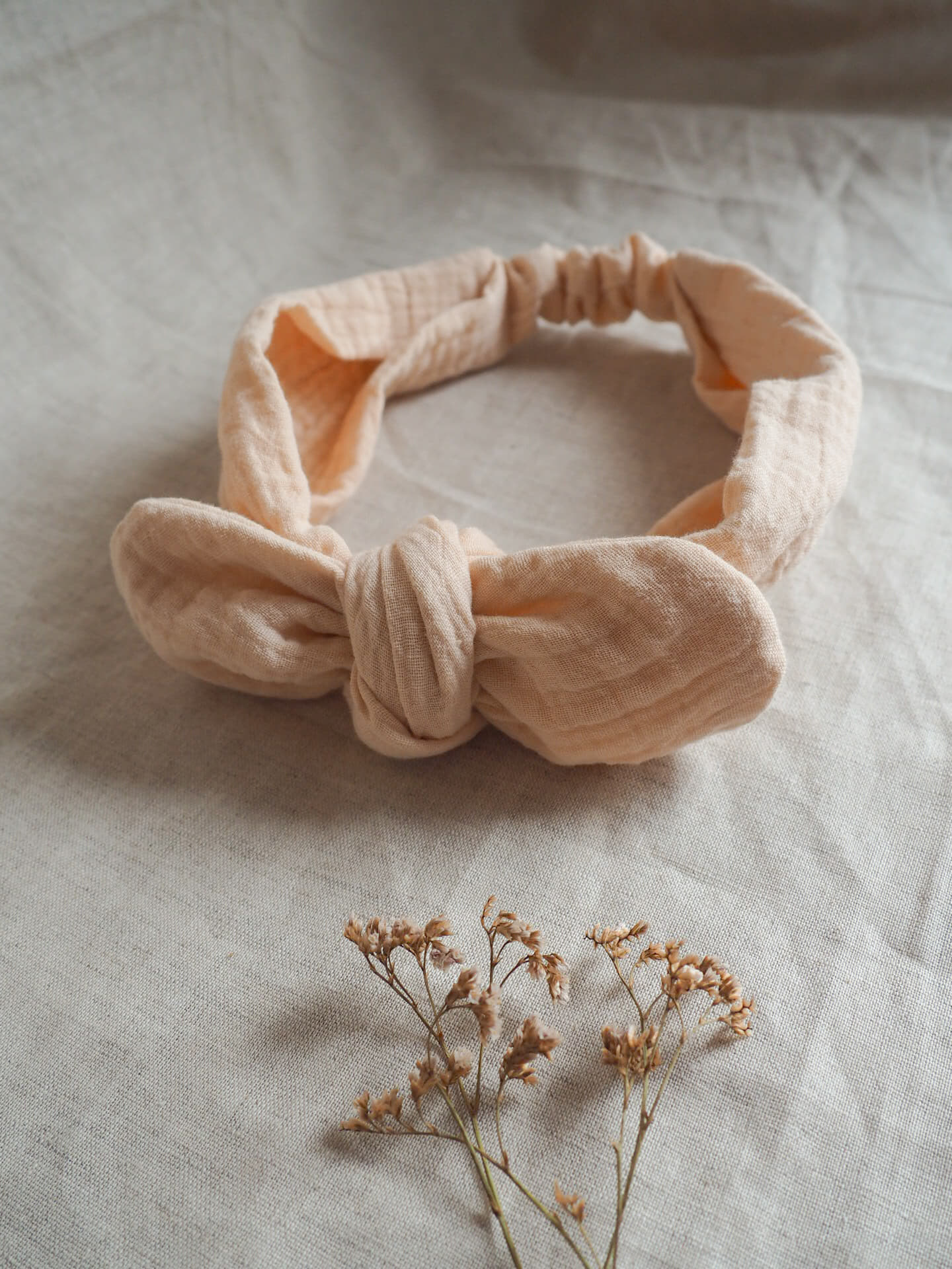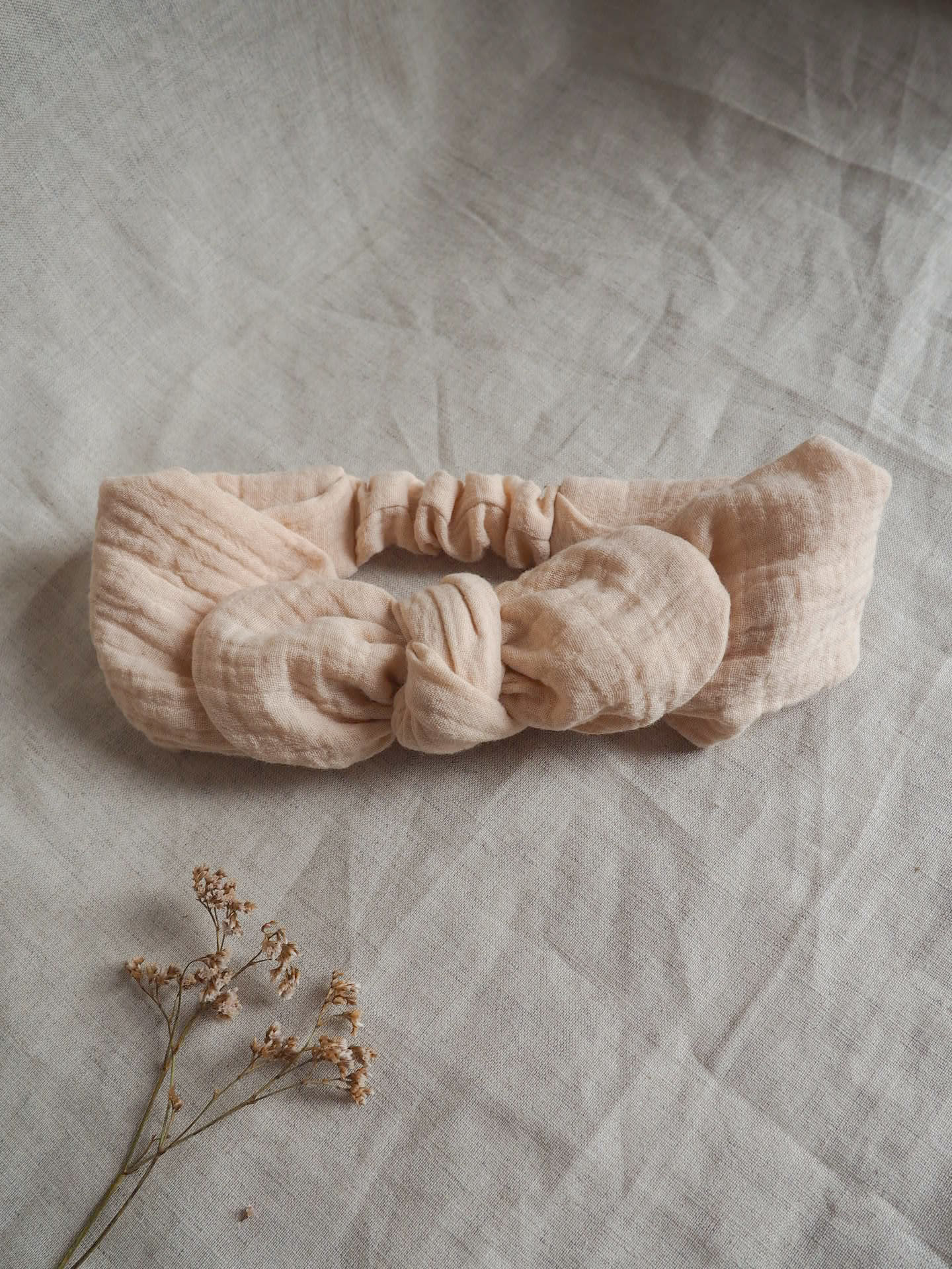 Opaska wykonana z wysokiej jakości, delikatnego muślinu bawełnianego.
