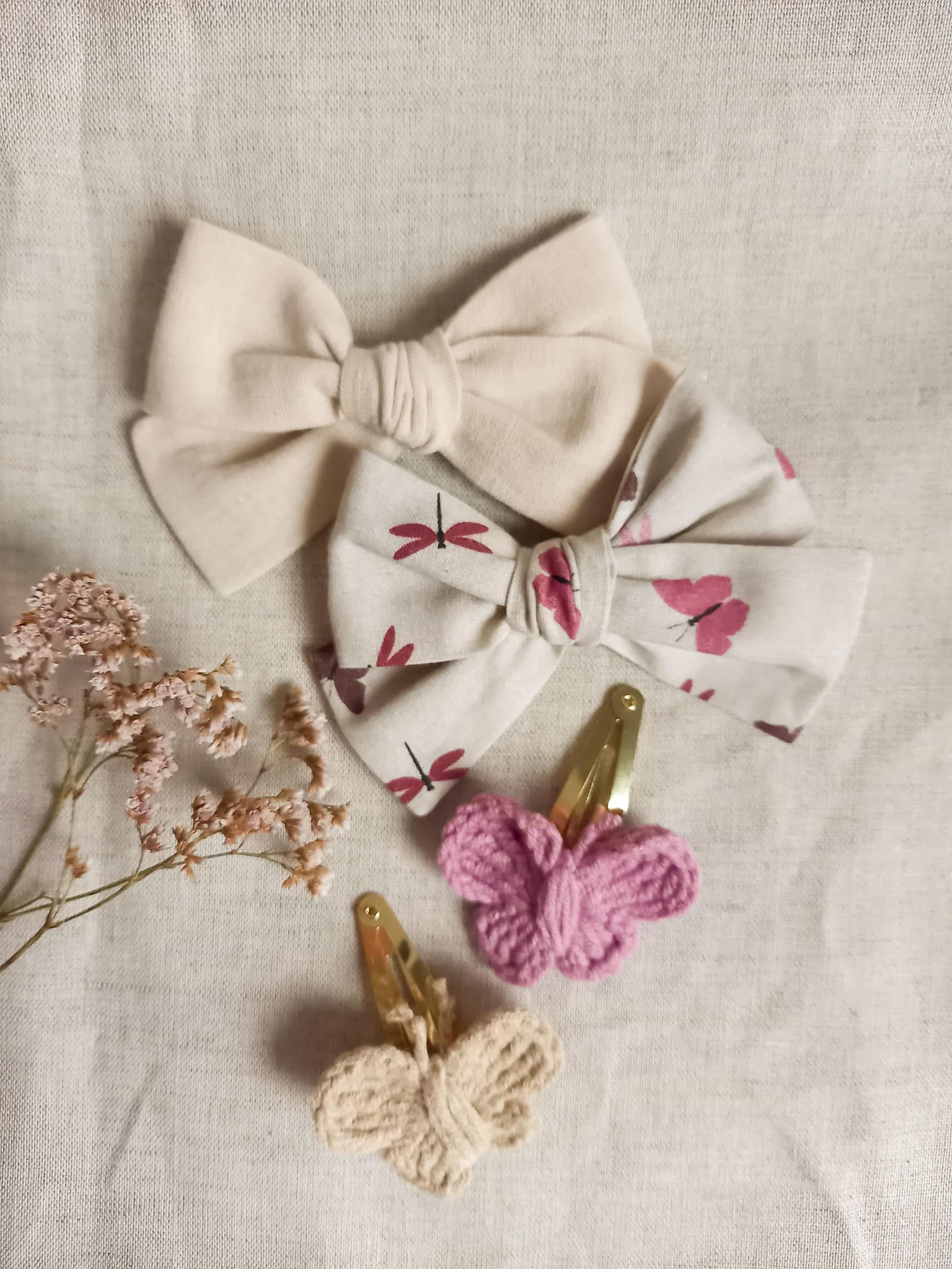 Kokardki występują jako spinki do włosów, opaski bezuciskowe oraz gumki do włosów.