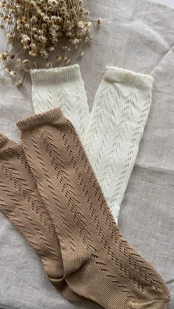 Podkolanówki bawełniane, ażurowe ze ściągaczem. Elastyczne, oddychające z przyjemnej bawełny. Nie rozciągają się z czasem i nie pęczkują.