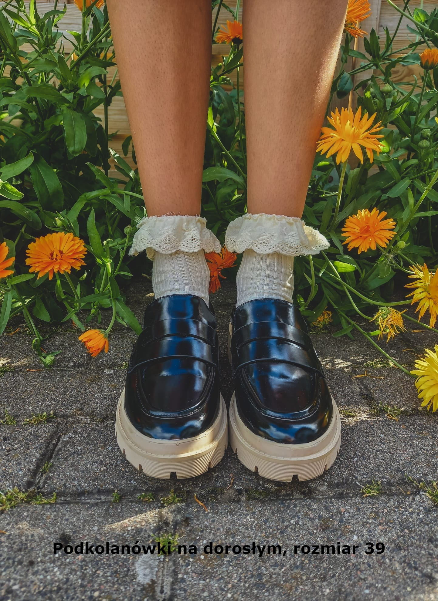 Ubrane na dorosłą stopę (rozmiar 38) sięgają maksymalnie 15cm od pięty w górę.