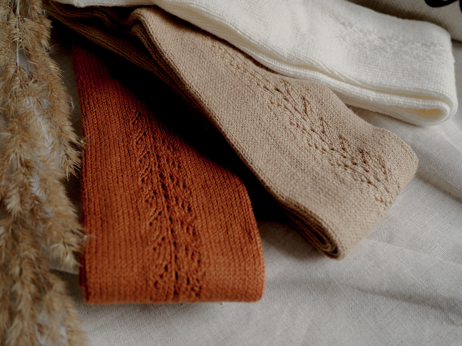 Gładkie z delikatnym, ażurowym wzorem z boku.